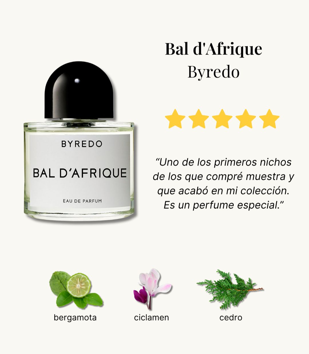Base notes: Moroccan cedarwood, vetiver